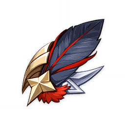 Pena grudada na capa do cavaleiro. Após ser manchada diversas vezes com sangue, acabou ficando totalmente escura.