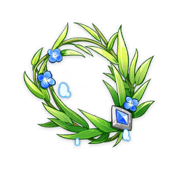 Uma pequena flor azul jade, cuja fita está amarrada no caule.