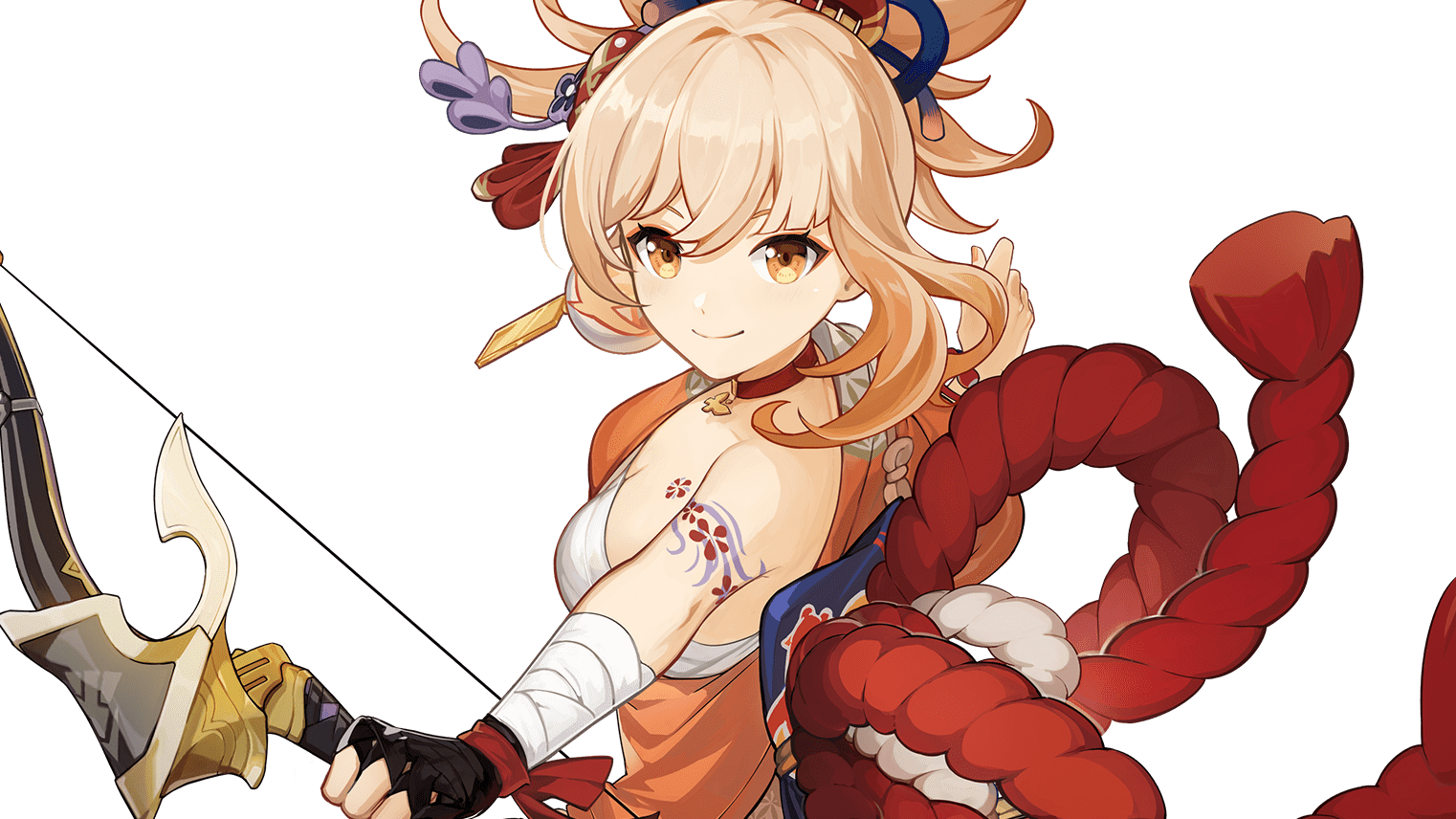 During this time, arrows fired by Yoimiya's Normal Attack will be Blazing Arrows, and their DMG will be increased and converted to Pyro DMG. During this time, Normal Attack: Firework Flare-Up will not generate Kindling Arrows at Charge Level 2.